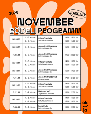Von September bis Dezember 2025 öffnet die OKJA erneut einmal monatlich den Jugendtreff in der Pfrundscheune (Gsteig 4, Gsteigwiler, neben dem Friedhof Wilderswil).